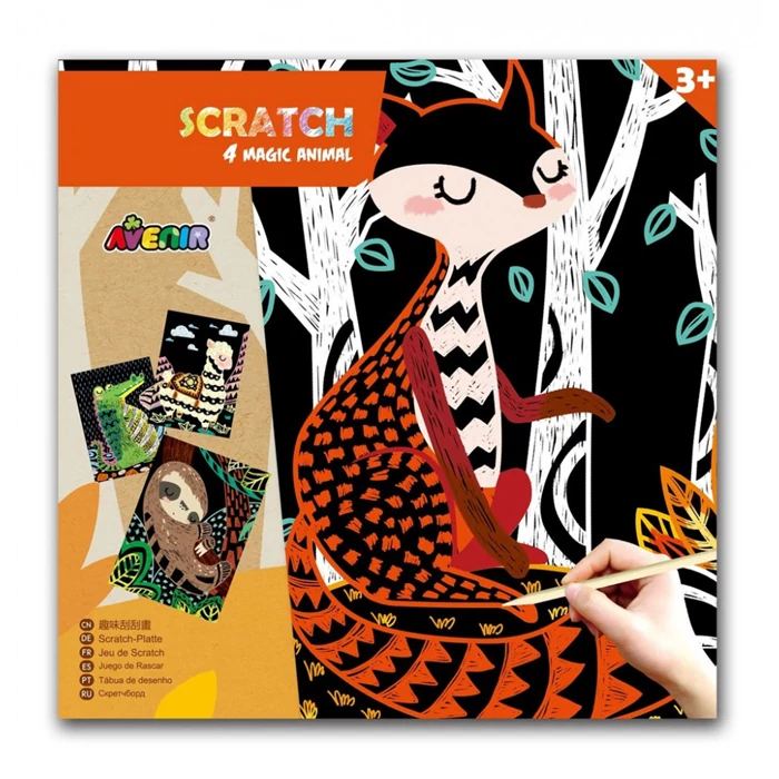 Az Avenir csodálatos, élénk színű karckép készítője biztos, hogy szórakoztatni fogja a kicsiket. Csak meg kell karcolni a speciális fekete papírlapokat az állati minták elkészítéséhez. A készlet fejleszti a kreativitást, a kézügyességet, a finommotorikát.