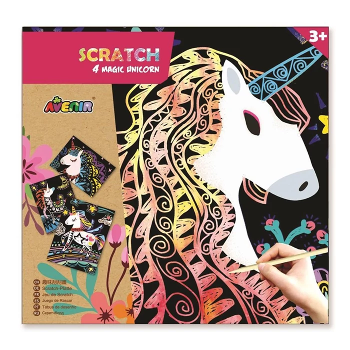 Készíts izgalmas képeket karctechnikával! A különleges fekete papírlapokat megkarcolva színes egyszarvús rajzokat készíthetsz. A készlet fejleszti a kreativitást, a kézügyességet, a finommotorikát.