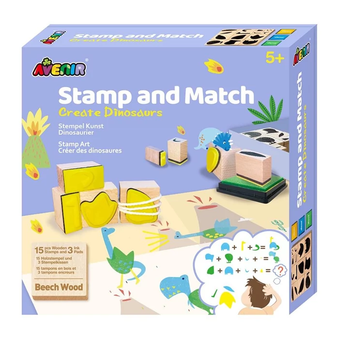 Te is szeretsz nyomdázni? Az Avenir különleges nyomdakészletével szabadjára engedhetetd fantáziádat! A játék 15 nyomda formát, 3 különböző színű festéket, 3 nyomdázható képet és 1 fonalat tartalmaz. A különböző formák egymásra nyomdázásából alakíthatod ki a szebbnél-szebb dinós mintázatokat, így különböző színű és formájú élőlényeket hozhatsz létre.