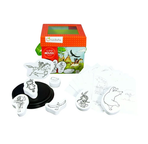 Ez a doboz 10 darab indián mintázatú nyomdát tartalmaz. Hasznosak és színesek ezek az erős kartonból készült dobozok, amelyek 10 pecsétet, 1 tintát és 10 dekorációs kártyát tartalmaznak. Tinta vízzel mosható.