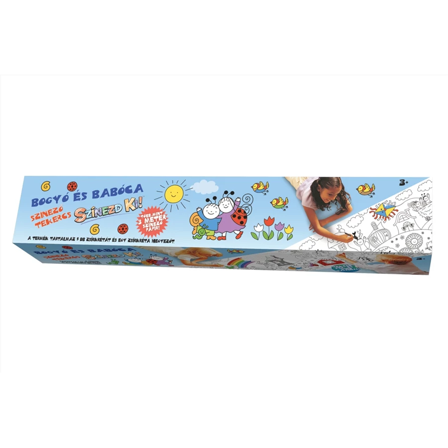 A színező tekercs egy új és különleges színező, ami eltér a megszokott színezőktől! A tekercs három méter hosszú és kis híján fél méter széles kihúzható színező. Egyszerre akár több gyerek is tudja színeznil. A képek színezése közben a kicsik átélhetik a Bogyó és Babóca kedvenc meséjük csodálatos történeteit! A készlet tartalmaz még öt darab zsírkrétát és egy hegyezőt is, így kibontás után azonnal neki lehet kezdeni a munkának.