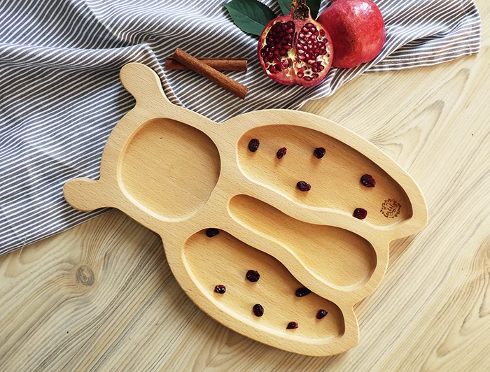 Borbolya fa tányér gőzöletlen bükkfából, katica alakú.