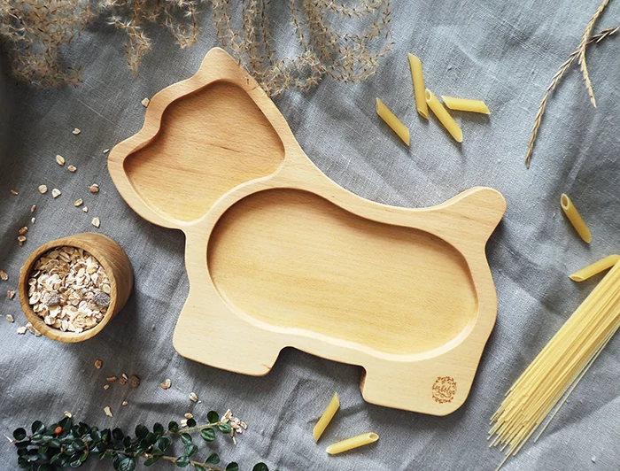 Borbolya fa tányér gőzöletlen bükkfából, kutya alakú.