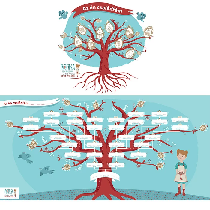 Most Nektek is lehet ilyen szép, piros családfátok, amelyet kitölthettek a saját családtagjaitok neveivel. Kitehettek dekorációnak a falra vagy eltehetitek emlékbe. És mellé adjatok egy csokor családi történetet ajándékba.