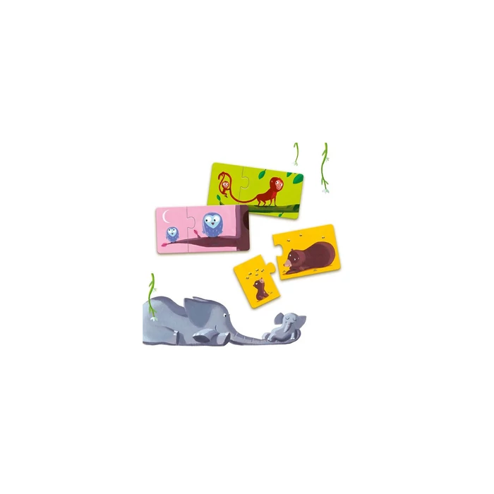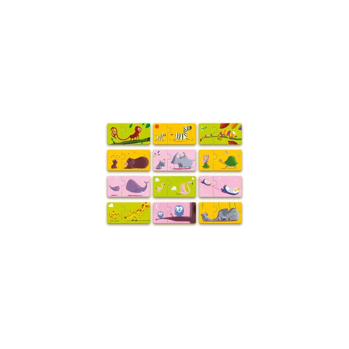 Páros puzzle-k, amelyek szorosan összetartoznak, ennek felismerésében segít, hogy azonos állatfigurákat kell a puzzle-ban összekapcsolni. A kisebb-nagyobb viszonyító szavak, a kicsi-nagy melléknevek gyakorlásához kiváló képanyagot nyújt a játék. A beszédfejlődés segítésén túl, az azonosságok és különbségek felfedezésében is segítenek a bűbájos állatfigurás képek.