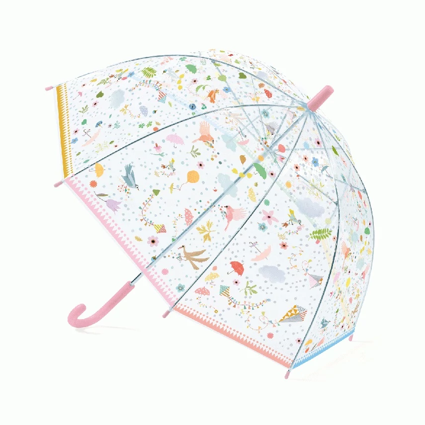Vidám és könnyed színek és formák a Djeco gyermekeknek szánt esernyőjén.