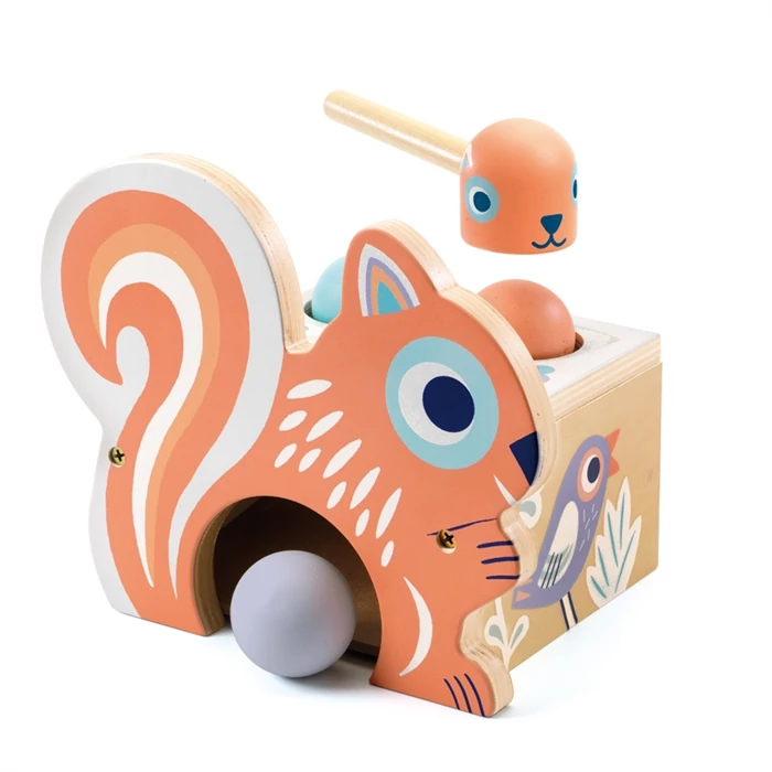 Egészen kicsi koccantástól hullik alá a színes golyó a mókuska házába és gurul ki az újabb játékhoz. A színek egyeztetésének szükségességével mintha arra tanítaná a gyermekeket, hogy "többet ésszel, mint erővel!". A Djeco fejlesztő játékai között ez a játék is egy jól átgondolt tervezés eredménye. A gyermekek értelmi funkcióin kívül fejleszti a figyelmet, megfigyelést, koncentráció képességet.