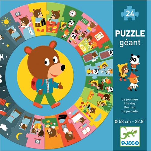 24 db-os, körben összeállítható puzzle, ami egy nap történéseit állítja folyamatba.