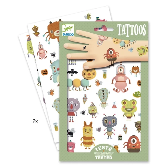 Vagány szörnyes tetoválások fiúknak! A mesés matricákkal egy egész történetet lehet felragasztani ideiglenes tetoválásként.