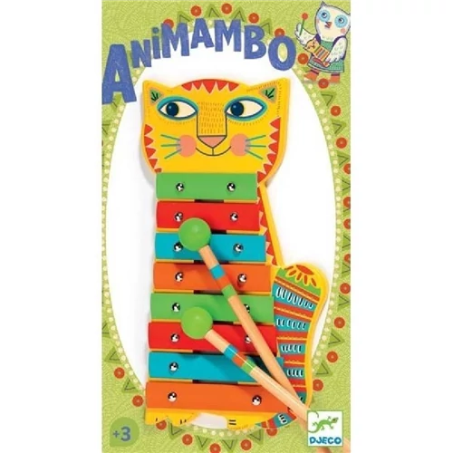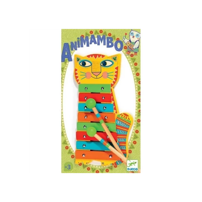 A Djeco zenebonáló sorozatából a színes, picit dél-amerikai motívumos, macska mintás xilofon az egyik legkönnyebben tanulható, igazán látványos hangszer, fa ütőkkel.