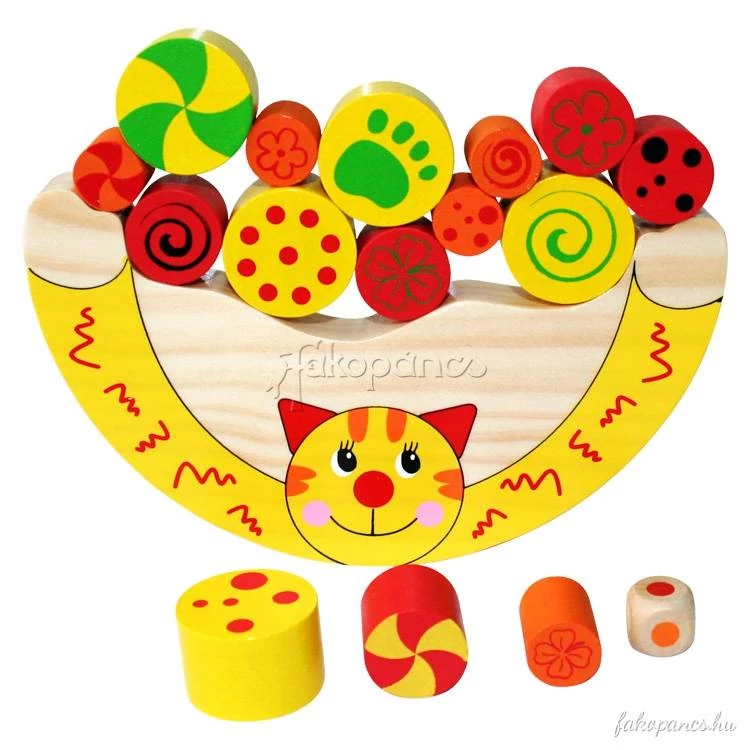 A játék tartalmaz egy kedves állatfigurát, 15 db hengert és egy színdobókockát.
