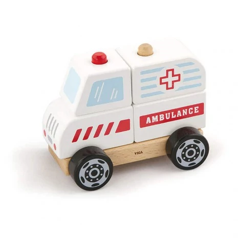 Kiváló minőségű és valósághű festésű nagy mentőautó építhető össze részeiből. A különböző darabokat az autó alapján elhelyezett farudakra kell helyezni helyes sorrendben. A szétszedhető és összerakható kisautó fejleszti a szem-kéz koordinációt és logikus gondolkodásra serkent. Az összerakhatós fajátékot 2 éves kortól ajánljuk.