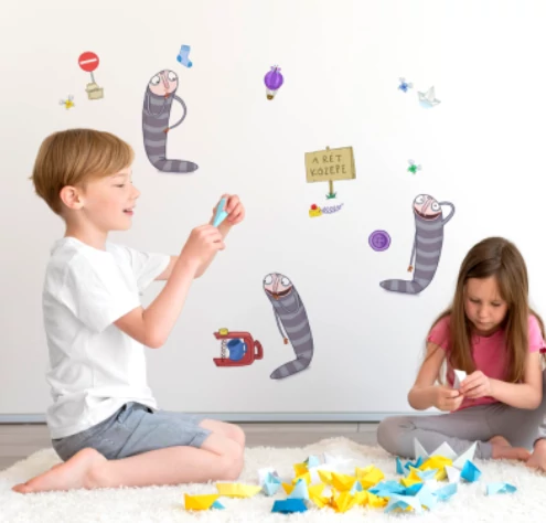 Ha újra bevizezzük a falmatricát, akkor 1-2 perc múlva egyszerűen lehúzhatóakká válnak a falról. Nem fognak szakadni, nem hagynak nyomot, és át lehet őket tenni máshova.