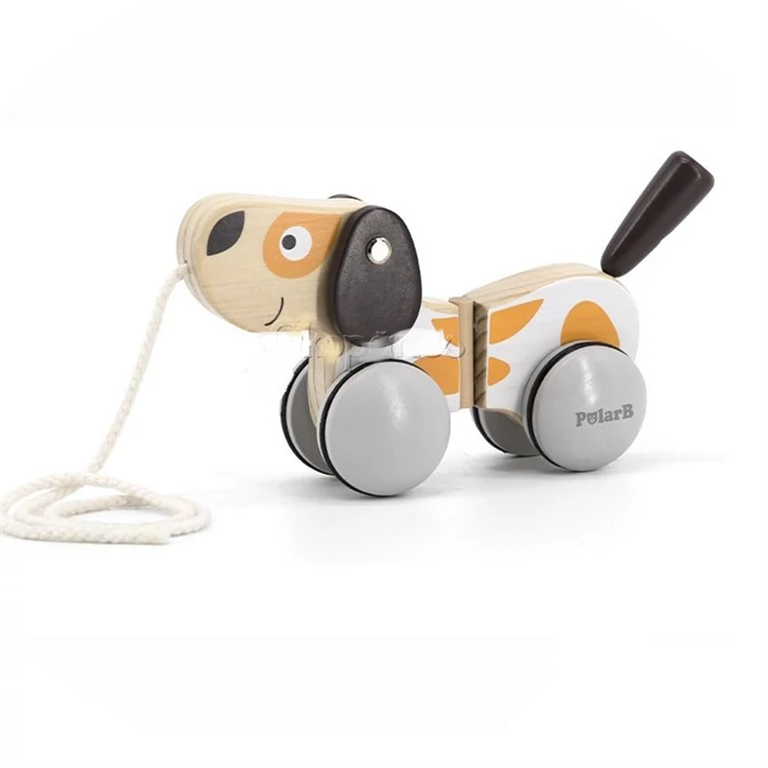 Húzható kutya, mozgásfejlesztő babajáték fából, hogy könnyű legyen az elindulás. Ez a kedves kutyus elkíséri a picurt az első lépéseire.