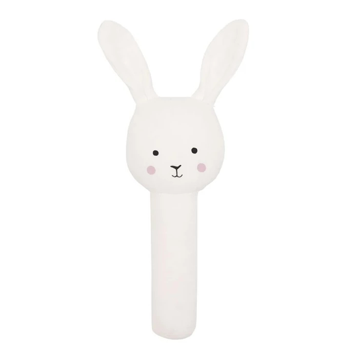 Imádnivaló kézi csörgő, amely könnyedén megfogható és tartható a kisbabák apró ujjaival. Ez a legpuhább textilből készült, legaranyosabb nyuszis csörgő lesz a baba kedvenc játéka. A gyengéd csörgő zaj tökéletes érzékszervi stimuláció a csecsemők számára.