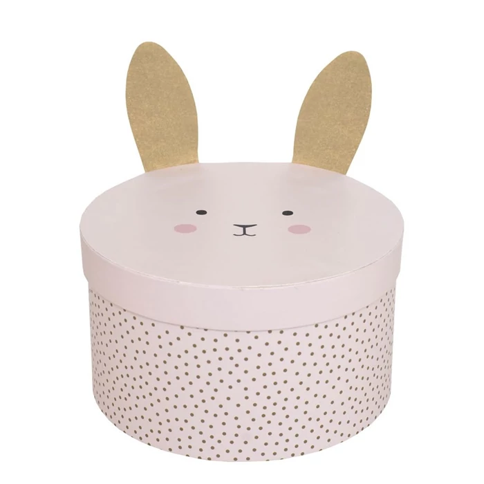 Aranyos nyuszis, kerek kartondobozok az egyszerű tároláshoz az óvodában vagy a gyerekszobában. Töltsd meg őket kis kincsekkel és kedvenc dolgaiddal, játékaiddal.