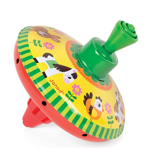 Nagyon színes búgócsiga, a kisebbek ügyességét fejleszti. Ha felhúzzák, zümmögő hangot ad. Egyszerűen le kell nyomni a kart, hogy az állatok gyorsan elkezdjenek forogni. A búgócsiga forgás közben egyensúlyban marad.
