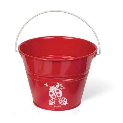 Kertészkedj,mint egy felnőtt! Piros, katicás fém vödör a Janodtól. Homokozz vagy tedd bele a kedvenc kis dolgaidat, kertész felszerelésedet.