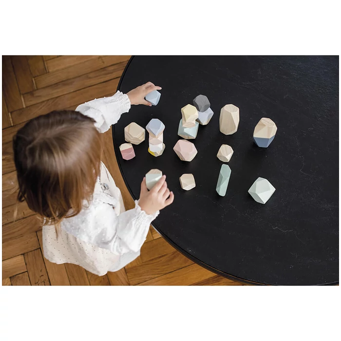 A fakövekből 20 különböző méretű és formájú darab van. Kiváló fejlesztő játék!