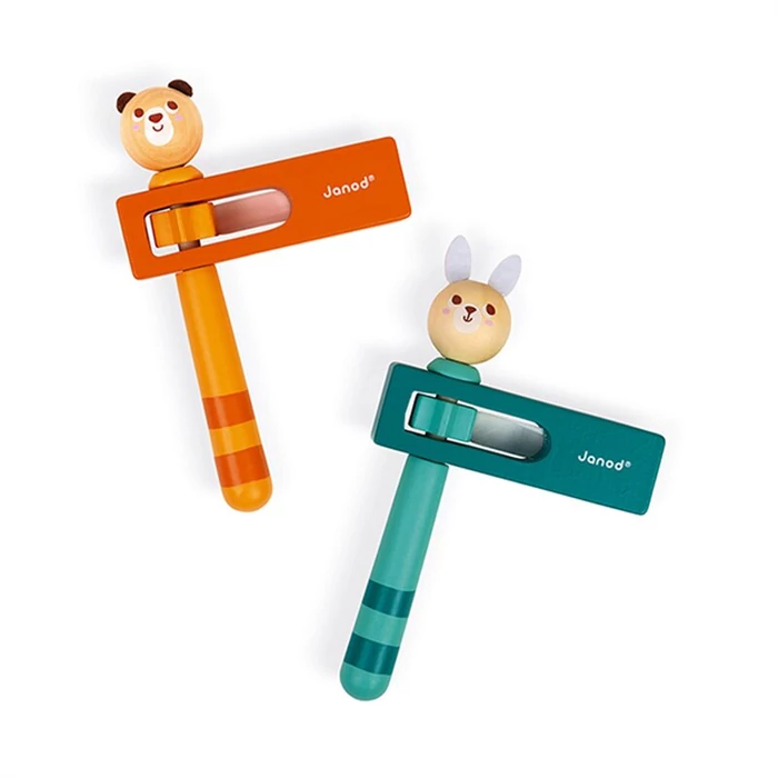 Ezekkel a medve és nyúl formájú kereplőkkel szuper tagja lehetsz játékzenekarodnak. Ez a különleges hangszer teljes mértékben fából készült. Csak meg kell pörgetned, és már hallhatod is a különleges hangot. Használta egyszerű és biztonságos, már egészen kicsi kortól remek szórakozás. A filc fülű nyúl és maci szuper partit csinál!