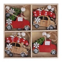 Karácsonyfadísz (8db-os piros- natúr autó)