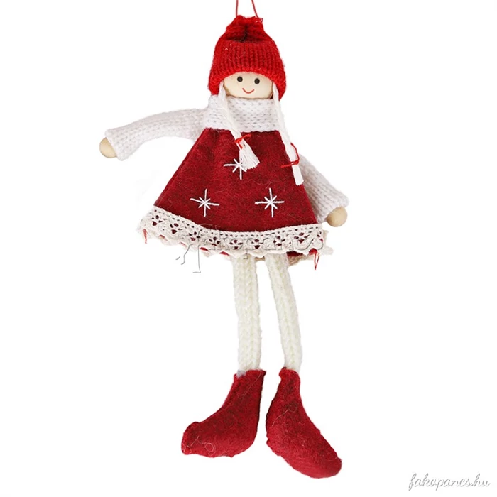 Karácsonyfadísz filcből (bordó- fehér, hosszú hajú lány)