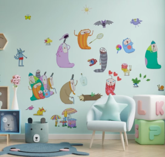 Ez egy különleges anyagból készült falmatrica, A Kuflik mese szereplőiből készült különleges falmatrica gyűjtemény. Kicsik és nagyok és használati tárgyaik amivel egy teljesen feldíszítheted a szobád.