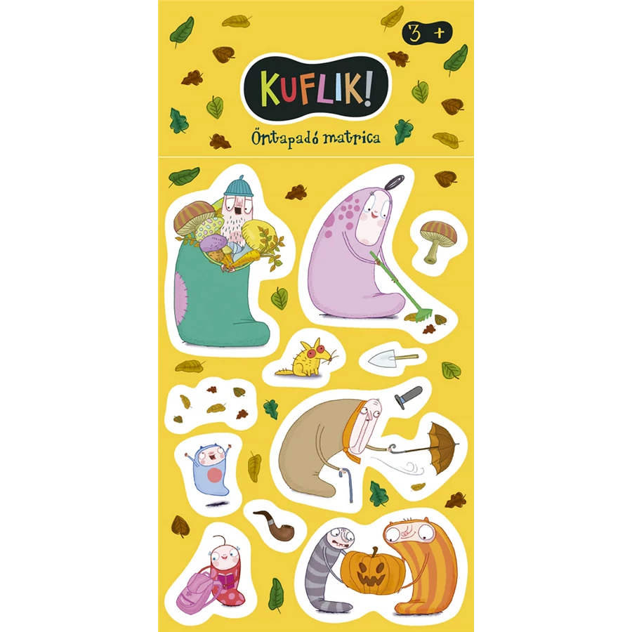 Őszi hangulatú öntapadó matricacsomag Dániel András Kuflik mesesorozatának szereplőivel és motívumaival (akik kedvenc őszi tenni-venni valójukat mutatják be). A matricák egyenként körbevágottak, könnyen leválaszthatók. A matrica csomag egyben KUFLIK színezőt is tartalmaz!
