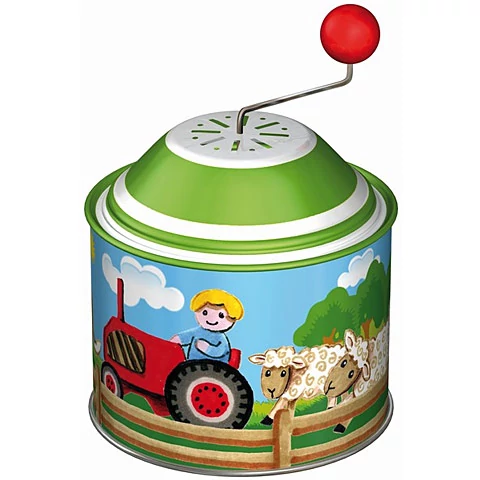 Lassan kezdd el tekerni ezt a különleges kis fém dobozt, és máris hallhatod amint kellemes lágy dallamon zenélni kezd! A farmos külső mintával ellátott zenélő doboz a kicsik nagy kedvence lesz, hiszen mindig lejátszhatják vele a kedvelt dallamot, ehhez csak a kart kell megtekerniük. A traktorral és bárányokkal is dekorált zenélő doboz remek választás lesz a legkisebbek számára is.
