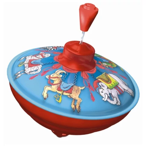 Ezen a csodálatosan szép, részletgazdagon kidolgozott és fém felső résszel készített búgócsigán egy körhinta elevenedik meg. A búgócsiga remek játék kisebb és nagyobb gyermekek számára egyaránt és használata egyszerű, ám remekül fejleszti a kicsik kézügyességét és motorikus mozgását. A forgásba lendítéséhez csak meg kell nyomni párszor a játék tetejét található kart, amitől az pörgés közben egyensúlyban marad és nem dől el. A búgócsiga használaton kívül a szobának is remek dísze lehet.