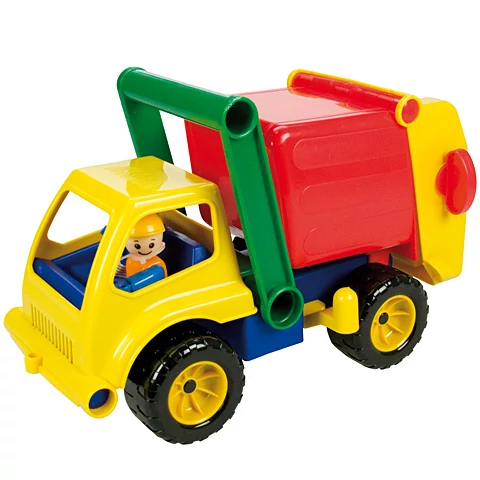 Ezzel a szuper kukásautóval könnyedén összegyűjtheted a város szemetét! A színes, rendkívül strapabíró műanyagból készült kukásautó valódi emelő funkcióval rendelkezik, így a kukát a rakterébe tudja üríteni. A billenthető raktért a szeméttelepen könnyen ürítheted, hogy aztán újabb körre indulj a kukásautóval. A figura a vezetőfülkébe ültethető, melyhez a fülkét egy mozdulattal előre billentheted. Élvezd a játékot a homokozóban vagy akár otthon a szobádban is!