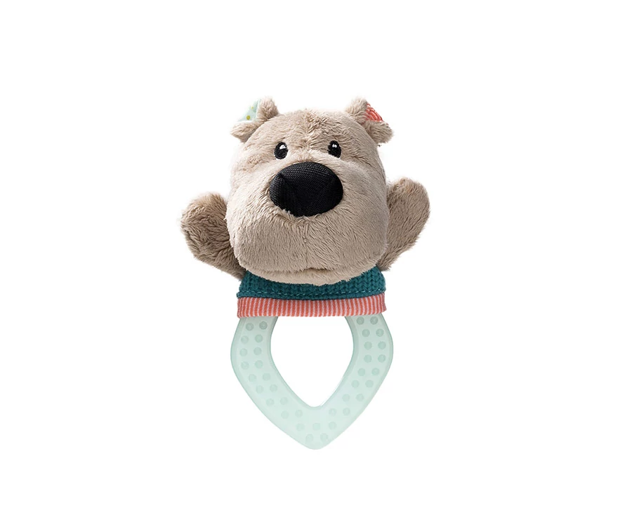 Puha és megnyugtató rágóka, az elvarázsolt erdő bájos César mackójával. Kellemes, zörgő hangjai a hallást is stimulálják. 30 fokos, kímélő programon mosógépben is mosható. Mérete: 12,5 x 9,5 x 5 cm