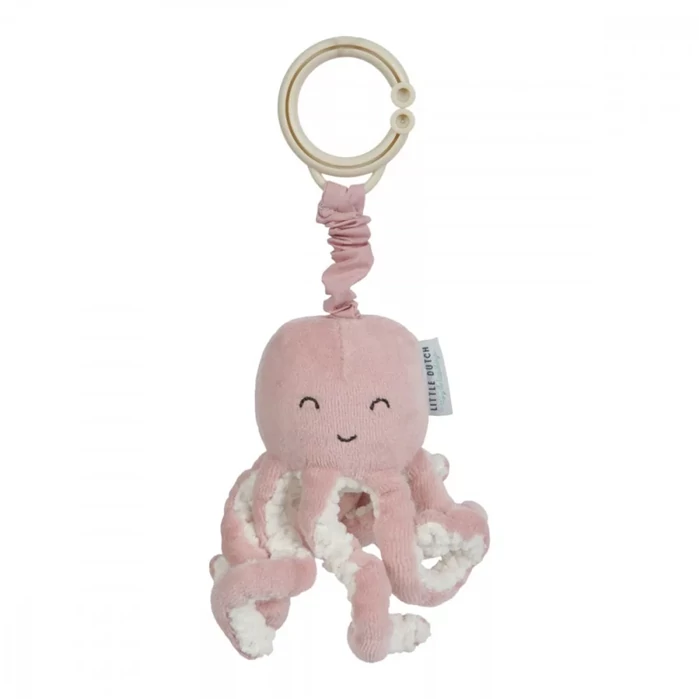 Little Dutch puha plüss polip, hordozóra, kiságyra, járókára vagy akár babakocsira akasztható. A zsineg meghúzását követően a kis polip rezegni kezd.