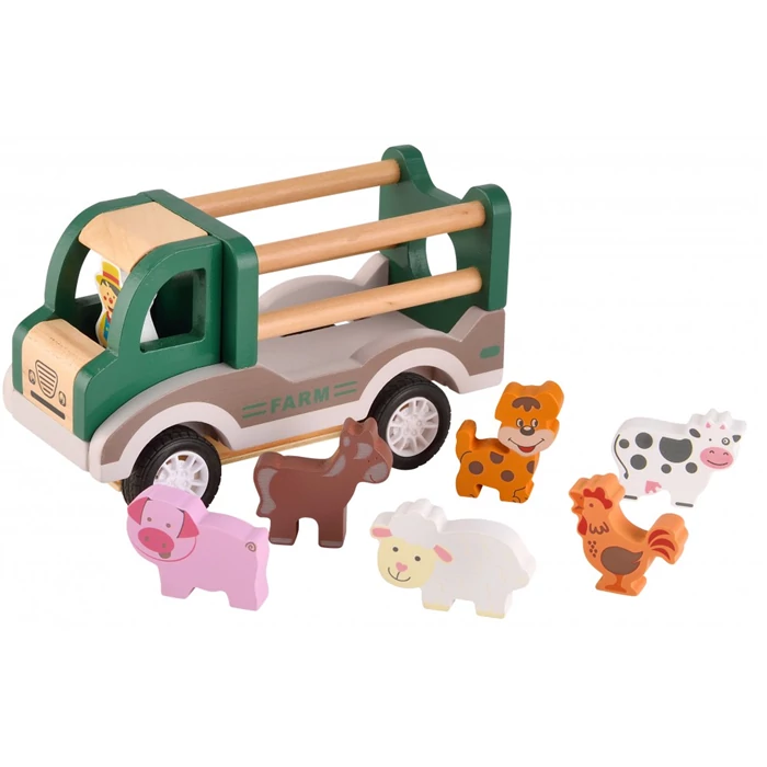 Farm teherautó 6 különböző fa állatfigurával.