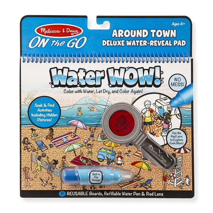 Paca és maszatolás nélkül festhet most gyermeked ezzel a vizes filctollas színezővel, ami 8 újrafesthető lapot és egy újratölthető filctollat tartalmaz. Egyszerűen csak színezd ki az egyes oldalakat, amin tengerparti jelenetek szerepelnek. Amint víz éri a lapot, előtűnnek a csodálatos színek. Hagyd megszáradni, és a festék eltűnik, így újra és újra kifestheted azokat. A tengerparti jeleneteket ábrázoló képeken elrejtettünk tárgyakat, amiket a színezés után meg kell keresni. És most a készlethez adunk egy piros lencsét is, amivel titokzatos, rejtett dolgokra lelhetsz a füzetben. A vizes filctoll könnyen megfogható, így az apróságok számára sem okoz gondot a színezés. Kiváló játék utazáshoz is. Javítja a finommotoros készséget, a korai írás-olvasás, valamint a tárgyak vizuális megkülönböztetésének képességét. Ajánlott 4-7 éves korosztály számára.
