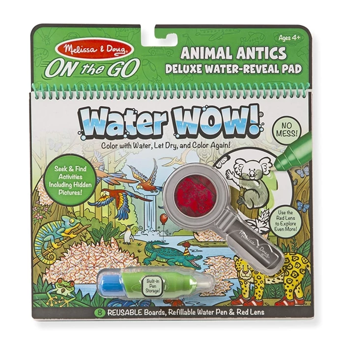 Paca és maszatolás nélkül festhet most gyermeked ezzel a vizes filctollas színezővel, ami 8 újrafesthető lapot és egy újratölthető filctollat tartalmaz. Egyszerűen csak színezd ki az egyes oldalakat, amin állati jó jelenetek szerepelnek. Amint víz éri a lapot, előtűnnek a csodálatos színek. Hagyd megszáradni, és a festék eltűnik, így újra és újra kifestheted azokat. Az állatian jó jeleneteken elrejtettünk tárgyakat, amiket a színezés után meg kell keresni. És most a készlethez adunk egy piros lencsét is, amivel titokzatos, rejtett dolgokra lelhetsz a füzetben. A vizes filctoll könnyen megfogható, így az apróságok számára sem okoz gondot a színezés. Kiváló játék utazáshoz is. Javítja a finommotoros készséget, a korai írás-olvasás, valamint a tárgyak vizuális megkülönböztetésének képességét. Ajánlott 4-7 éves korosztály számára.