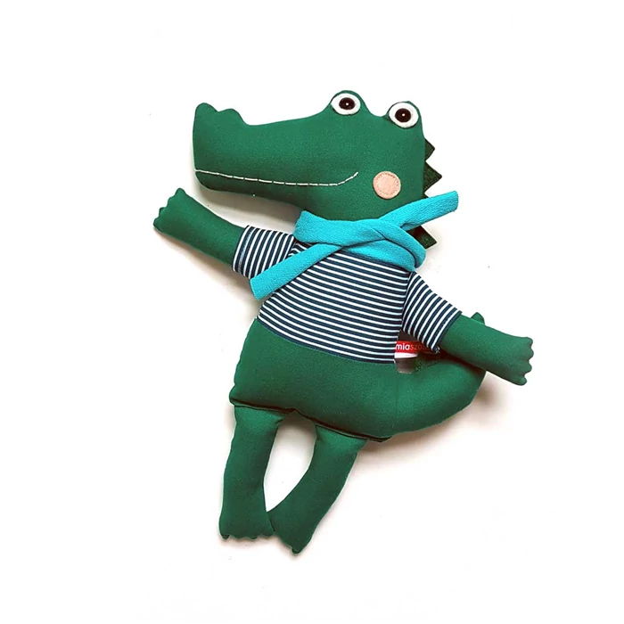 Pamut anyagokból varrt jókedvű krokodil legény.