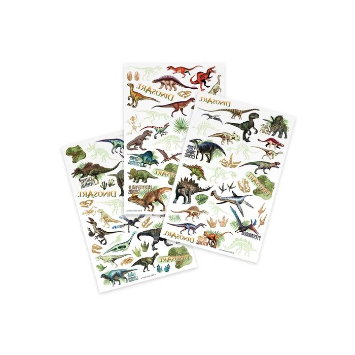 Kedvenc dinoszauruszok ihlette 100db-os tetoválás csomag amik világítanak a sötétben. Vízzel könnyen lemosható.