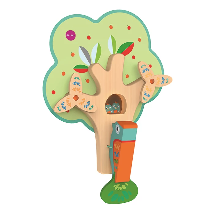 A Busy Woodpecker szorgos harkályával kopogtathatsz, a pörgettyűkkel pedig mozgathatod a fa lombját.