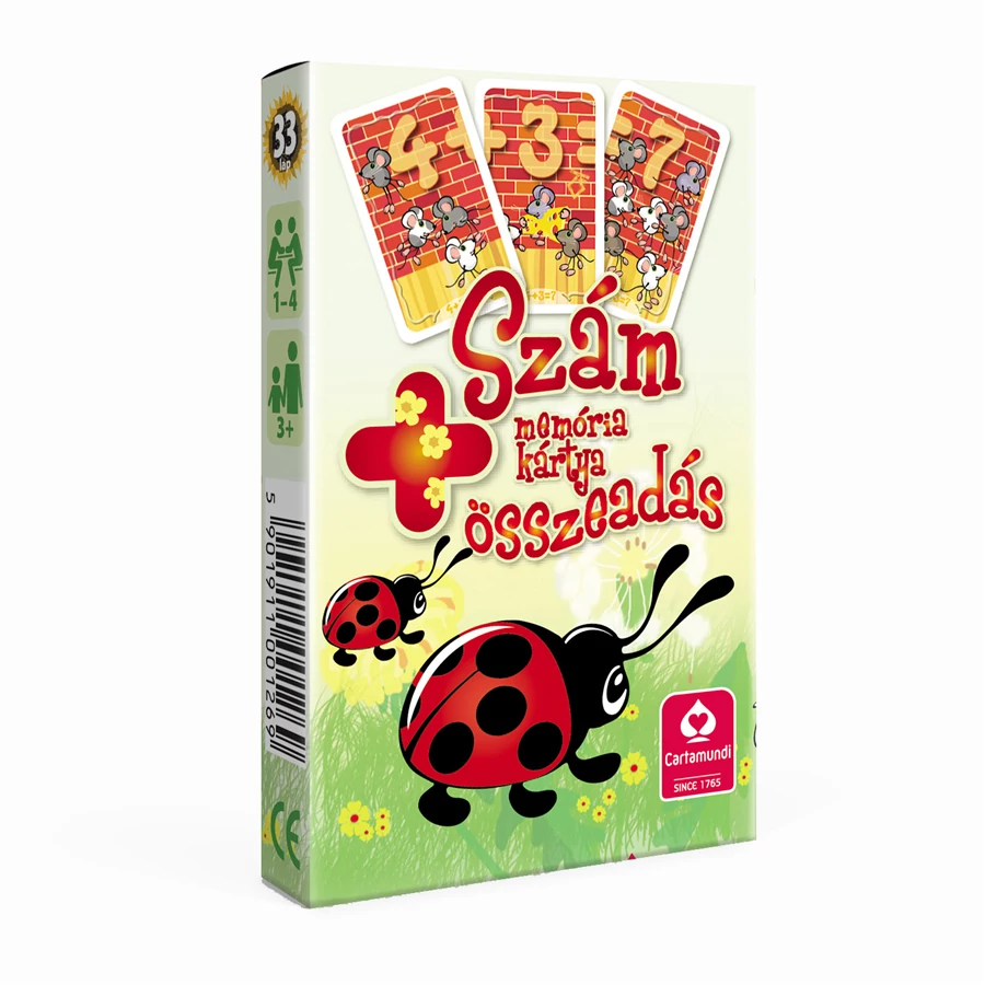 Memória kártyajáték. Találd meg a 3 lapot az egyenlet (pl. 2+3=5, összeadandó+összeadandó=összeg) összeállításához. A lapokon található kis képek és a színek segítenek!!!!