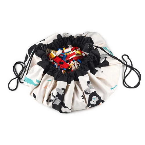 Erre nyújt megoldást a Play&Go játék tároló zsák, ami kettő az egyben. A sok kis darabot beleszórhatod, és ha kell előveszed és játszó szőnyegként tudjátok használni. Így többé nem kell a kanapé alól kihalásznod a játékokat. Egy perc alatt rend lesz. Nincs más dolgod, mint összehúzni a zsákot. Mivel a 140 cm átmérőjű zsák erős pamut anyagból készült, így a parkban, vagy kertben is nyugodtan használhatjátok. De kiválóan alkalmas a kedvenc játékok nagyszülőkhöz való szállítására is.